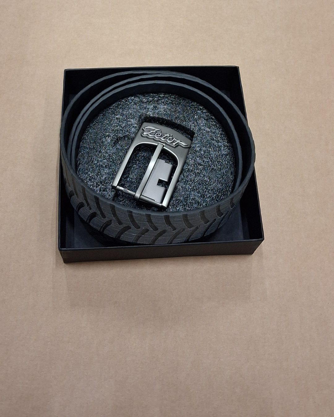 Kožený opasek se stopou a s logem Zetor na přezce. Velikost 40x120 cm.